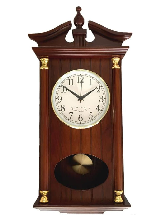 Reloj de pared con péndulo fabricado en madera noble, alta calidad.